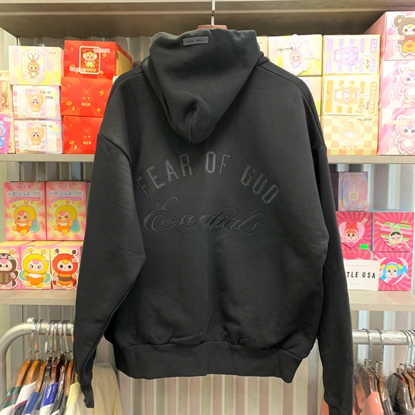 Fear of God Essentials Embroidered Classic Full Zip Hoodie - Vintage Black