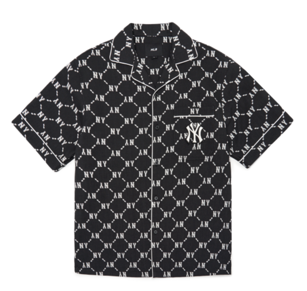 [THANH LÝ] Diamond Monogram Cotton-Jacquard Short Sleeve Shirt New York Yankees-Black