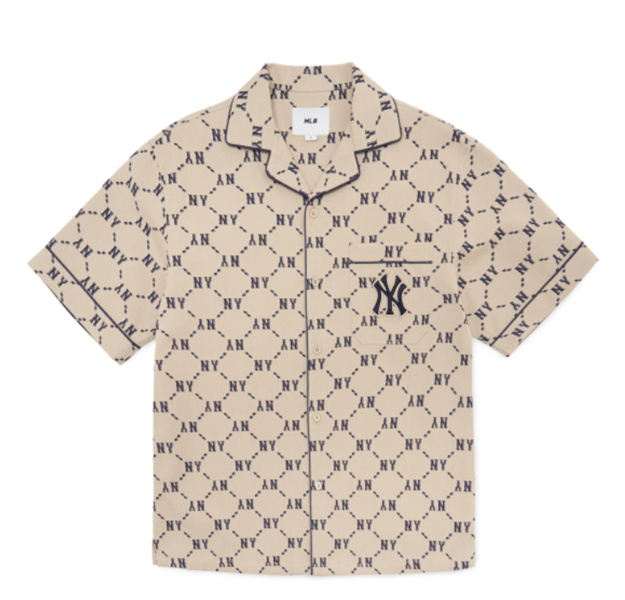 [THANH LÝ] Diamond Monogram Cotton-Jacquard Short Sleeve Shirt New York Yankees-Biege
