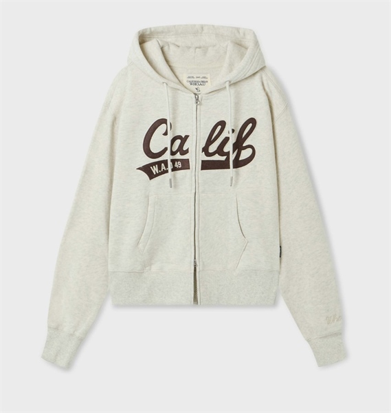 Whoau Patch Crop Hood Zip-up(Brushed) - Oatmeal Melange