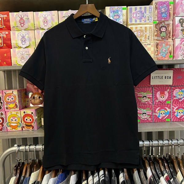 [Thanh Lý] RALPH LAUREN THE ICONIC MESH POLO SHIRT - BLACK (red/brown logo) (Lỗi Code)
