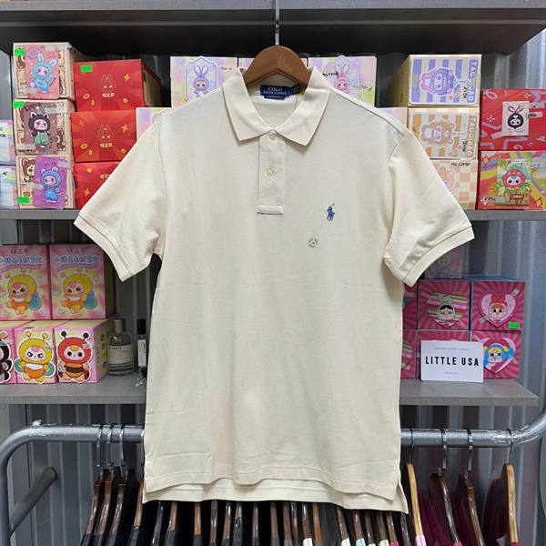 [Thanh Lý] RALPH LAUREN The Iconic Mesh Polo Shirt - Cream/Blue logo (Lỗi Code)