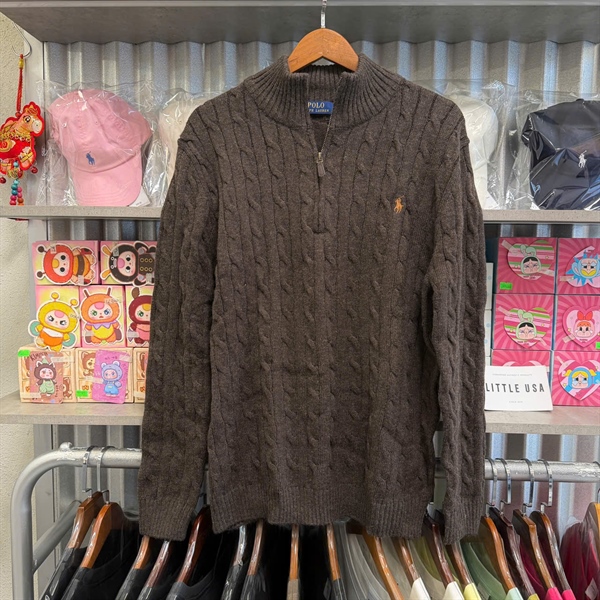[Thanh Lý] Ralph Lauren Cable-knit Cotton Quarter-zip - Brown (Lỗi code)