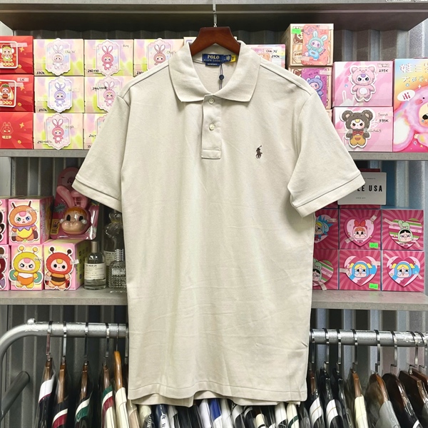 RALPH LAUREN THE ICONIC MESH POLO SHIRT - OATMEAL (brown logo)