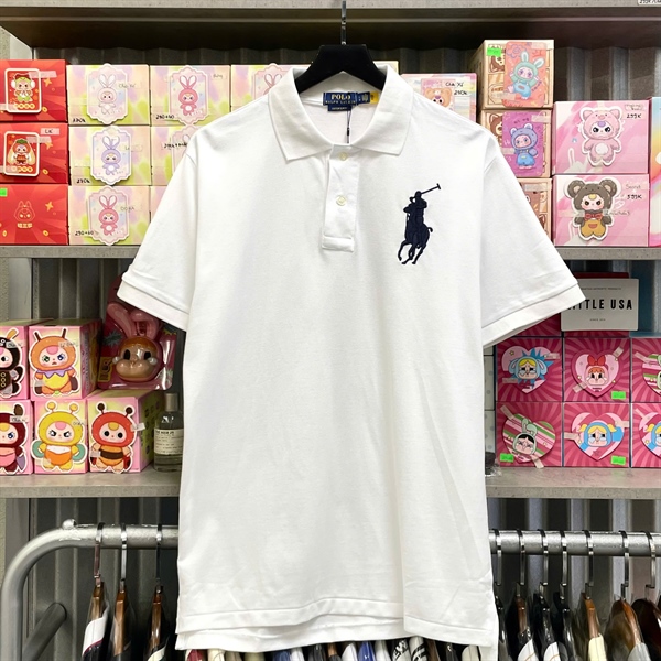 RALPH LAUREN BIG PONY MESH POLO SHIRT - WHITE (navy logo)