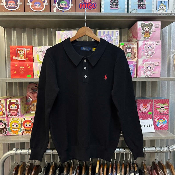 [thanh lý] Ralph Lauren Cotton Full-Zip Sweater - Black (Lỗi QR-Code)