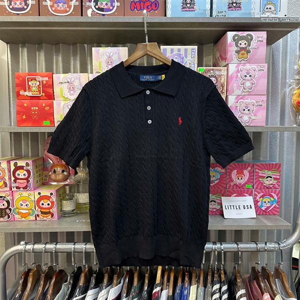 RALPH LAUREN KNIT POLO - BLACK (WHITE LOGO)